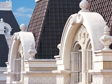 EPS構件以高強度阻燃型聚苯乙烯為基體,耐堿玻璃纖維網格布作為中間層,外層由無機抗老化聚合物乳液復合成型。電腦控制線切割,尺寸精確;產品自重輕,安全性高;徹底解決熱橋問題;安裝簡便,易搬運。上世紀80年代率先開始在歐美等國廣泛應用,是傳統GRC構件的劃時代升級產品。主要適用于歐式風格小區、酒店及商業街等建筑二樓以上檐角線、腰線及庭柱等部位。